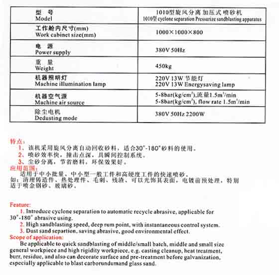 產(chǎn)品名稱: 1010型旋風(fēng)分離加壓式噴砂機(jī)