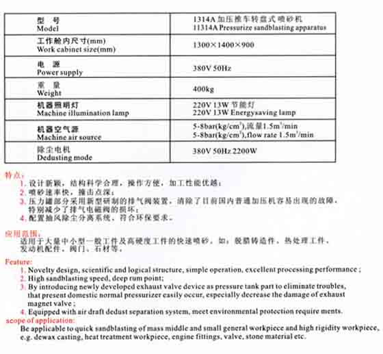 產(chǎn)品名稱: 1314A加壓推車轉(zhuǎn)盤式噴砂機(jī)