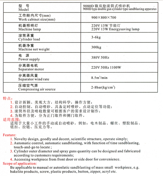 產(chǎn)品名稱: 9080D微雙槍滾筒式噴砂機